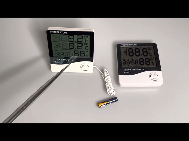 Мультифункціональність: Термогігрометр HTC-1 може вимірювати температуру як у градусах Цельсія, так і у градусах Фаренгейта, а також вологість відносної вологості.
